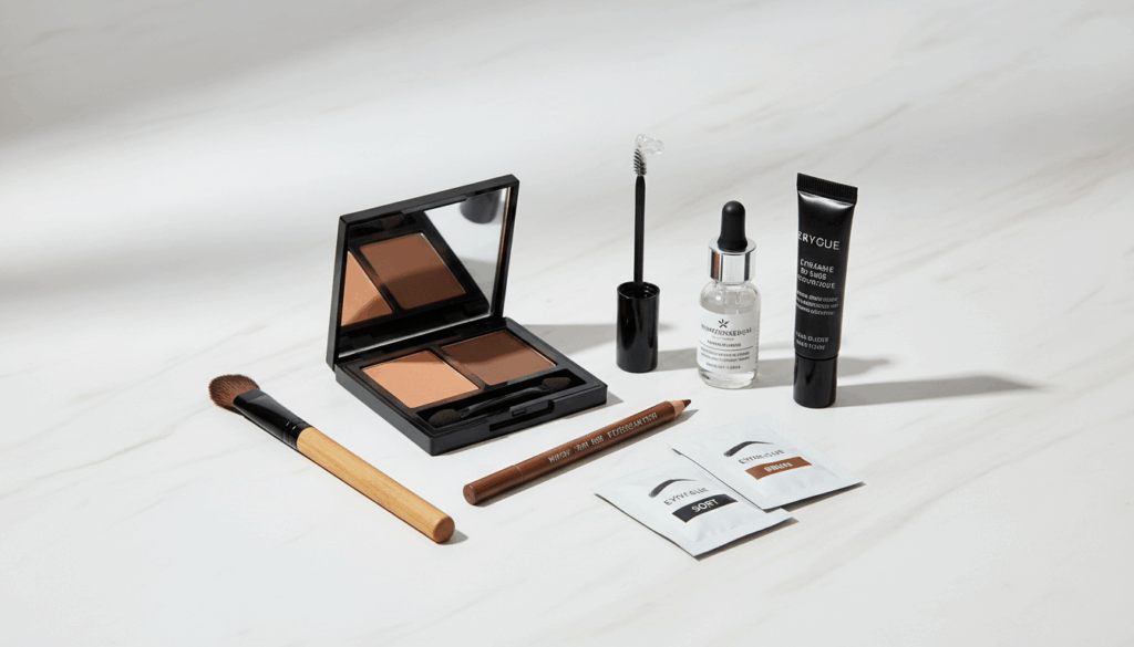 Typiske produkter inkluderer bryn – gel eller klar voks til form og hold, brynpencil og brow pomade til definition, samt farvet eller gennemsigtig brow mascara og pudder til volumen; vipper – serum til pleje og vækst, vippe-lim og topcoat til holdbar finish. Variationer som farvede eller gennemsigtige produkter, veganske formuleringer og forskellige applikatorer (spoolie, børste, tynd spids) gør det nemt at tilpasse looket.