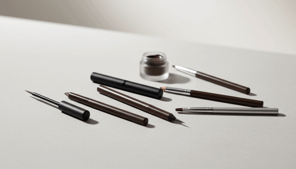 Typiske varianter inkluderer 2-i-1 blyanter med børste, ultratynde spidse blyanter, flydende eyeliner med præcis applikator, gel-eyelinere og pigmentrige brow gels eller pomades til brynene. Mange produkter kommer med en indbygget børste og spoolie for nem blending.