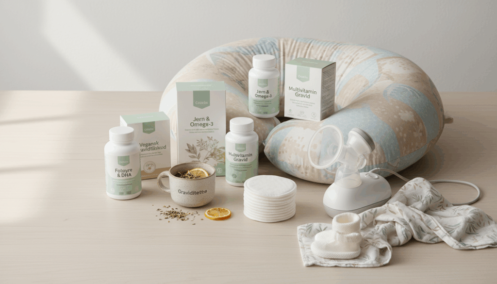 Når du vælger, kan du overveje om du er gravid eller ammer, og om du har særlige behov – eksempelvis vegan, ekstra folsyre eller jern. Variationerne spænder fra multivitaminer til specialtilskud, graviditetste og ammeudstyr som puder og pumper. Kategorien dækker også homøopatiske midler og naturlige tilskud, der støtter velvære gennem denne livsfase.
