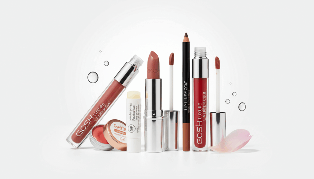 Lip-produkter dækker pleje og farve til læberne: balms og læbepomader, tinted balms, lipgloss, læbestifter og liplinere. Der findes også to-i-et produkter, der kombinerer kontur og coating. Finish varierer fra sheer og naturlig til høj glans og matt dækkende. Mange varianter er veganske, parfume-fri og allergivenlige og byder på plejeingredienser som hyaluronsyre eller peptider og små emballager til nem hverdag med 3,5 g til 8 ml.