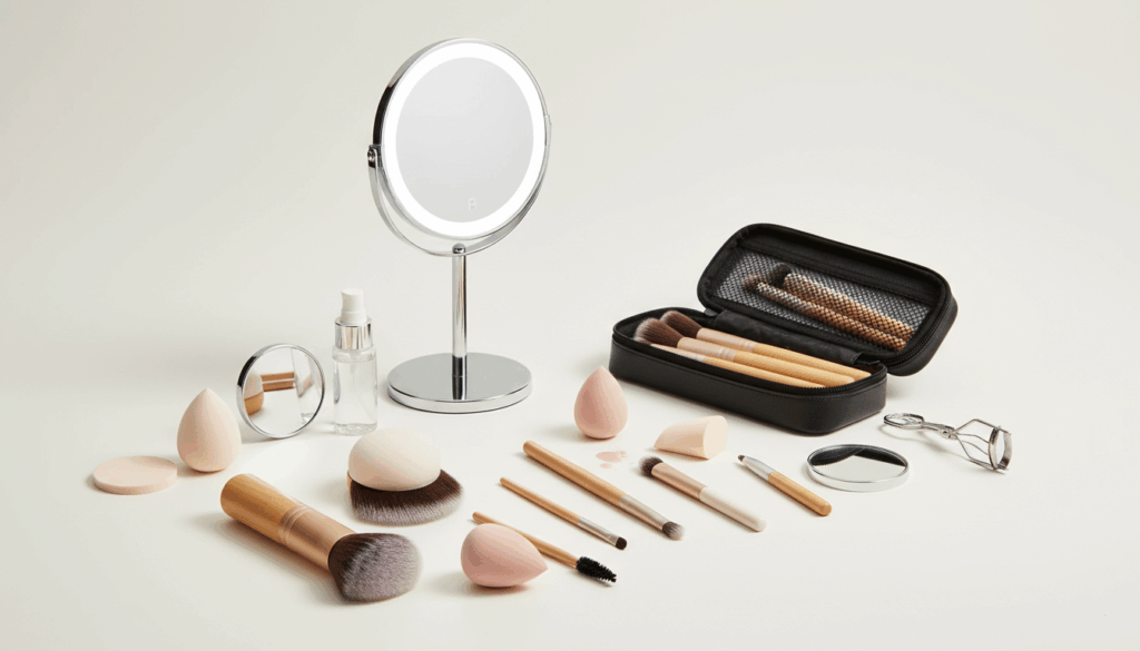 Makeupværktøj dækker alle redskaber, du bruger til at påføre og finjustere dit look: børster, svampe, spejle og små tilbehør. Kategorien omfatter foundation-, pudder- og blushbørster samt øjenskygge- og blendingbørster, contour- og præcisionsværktøj til bryn og læber. Svampe til flydende produkter, rejseetui og opbevaringsløsninger hjælper med ensartet finish og hygiejne. Spejle med forstørrelse eller LED-belysning sikrer præcis syn, også i svagt lys.