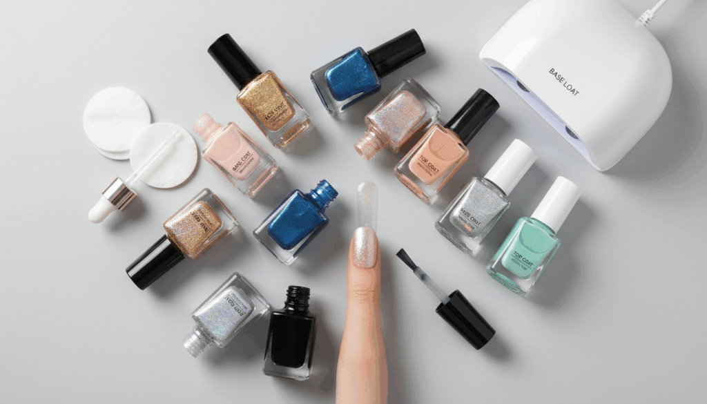 Ud over lakken findes base coats og top coats, der giver holdbarhed og beskyttelse. Gel-polish kræver UV/LED-lampe og kan bygges op i lag, mens almindelige lakker tørrer hurtigt. Se blandt andet udvalg hos Nailster og NiceHair.dk.