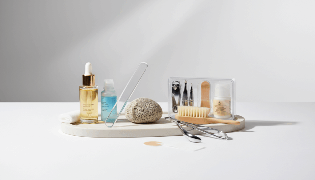 Et lille startkit kan indeholde negleolie, glasfil og neglebørste; til fødderne kan pimpsten og fodfil være praktiske. Find udvalgte produkter hos vores partnere: Australian Bodycare og Helsebixen.dk.