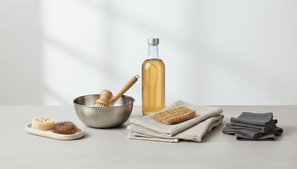Opvask og Køkkentilbehør samler alt til rengøring af service og køkkenredskaber. Her finder du opvaskebørster, skuresvampe og naturlige svampe, opvaskemidler og tilbehør som karklude og viskestykker samt praktiske opbevaringsløsninger som bakker og skåle. Sortimentet spænder fra bæredygtige fibre og kobberfinish til stilrene metal- og trædetaljer, som tilsammen gør køkkenet renere, mere organiseret og mere behageligt at bruge. Ved køb bør du overveje materiale, skånsomhed overfor sarte overflader, holdbarhed, duft og miljømærkning samt størrelse og vedligeholdelse. Variationsmulighederne omfatter opvaskebørster, svampe, karklude, viskestykker, opbevaringsløsninger og rengøringsmidler. For udvalgte produkter og inspiration til din opvask kan du se nærmere hos Helsebixen.dk og Ren-velvaereshop.dk.