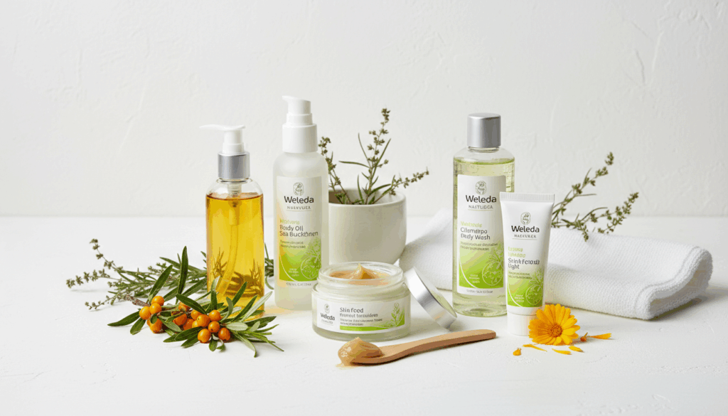 Weleda-kategorien samler naturlig hudpleje til ansigt, krop og hår baseret på økologiske planter og biodynamiske urter. Produkterne er milde, nærende og plejer uden at irritere huden.